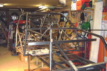 Etupään putket on sahattu ja tolppia sovitellaan.